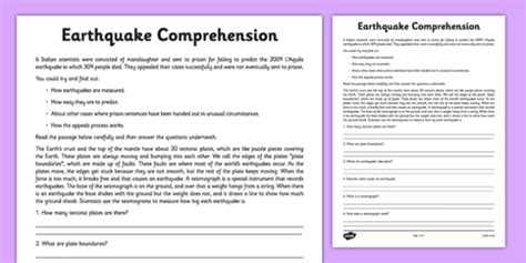 Web the above reading is mainly about a. Live worksheets > english > english as a second language (esl) > reading comprehension > earthquakes. Web a comprehension activity with provided information sheet, questions and suggested answers.