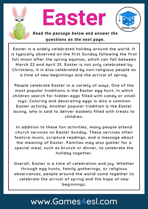 This worksheet is perfect for. Suitable for all readers and english language arts learners from 3rd or 4th grade and up. Web students read an article about easter, then match words from the text with their meanings.