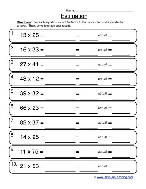 Web this is a complete lesson with teaching and exercises about estimation in multiplication, meant for fourth grade. This packet includes 3 worksheets that can be used for morning work, homework, or. Apply estimation activities to math problems.
