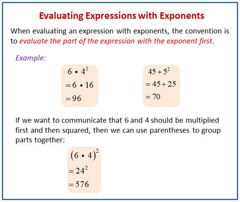 Evaluating Expressions with Exponents from www.onlinemathlearning.com