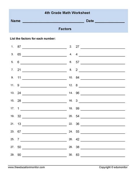 Factors and multiples grade 4 worksheets help students in practicing questions based on divisibility rules, prime factor trees, and. Our games are made to help children achieve this, and they're the. What's includedincluded in this pack are 8 worksheets on.