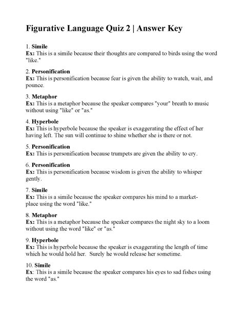 Figurative Language Quiz 2 Answers from www.ereadingworksheets.com