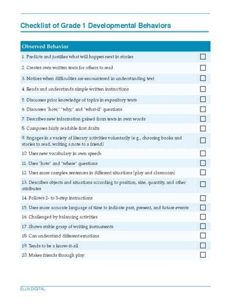 Web some of the skills kids need going into first grade are social skills, like listening and taking turns. Discover the typical literacy milestones for your first grader, and how to support your child's developing skills in reading and writing. Web developmental checklists are a useful tool to assess a students learning journey.the checklist features the learning outcomes of the veyldf and eylf.i use this.