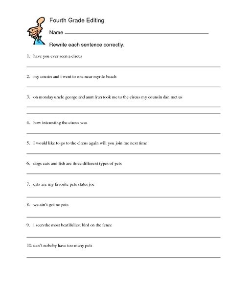 Web Fourth Grade Sentences Worksheets.