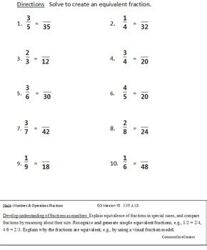Fractions Third Grade Common Core. Recognize and generate simple equivalent fractions, e.g., 1/2 = 2/4, 4/6 =. As they move into 4th and.