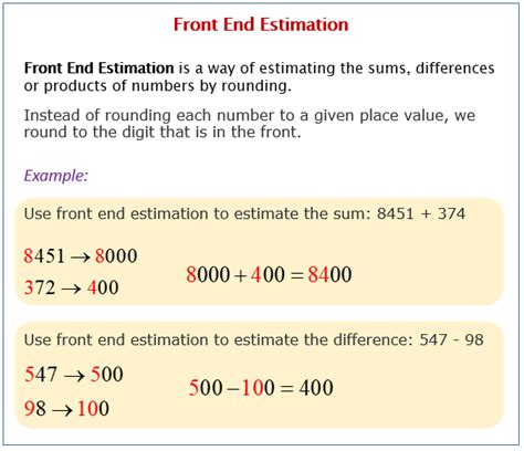 Front End Estimation Math. Using front end estimation and rounding in word problems is tricky! Now, if you wanted to get the exact answer you'd probably have to do, in fact you would have to do, some long division or.